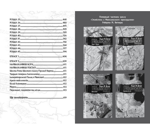 Фолькер Кучер«Оповістки з Меекханського прикордоння» — це справді нове слово в жанрі, яке поєднує найкращі риси класичного фентезі й сучасних історичних романів. Це історії про живих людей, що мусять зіткнутися з тим, що перевершує їхні сили, і не мають жодного права відступити. Війни не уникнути. Деана д’Кллеан знає це достеменно — але нині вона вже не Співачка Пам’яті й не воїтелька. Як обранка Аґара і Пані Вогню, вона мусить дбати про своє пустельне князівство, що от-от запалає від іншого полум’я — повстання рабів. У вирі цього повстання опиняється й Ґенно Ласкольник зі своїми вільними вершниками. Та вони поки не знають, що саме шукає серед рабів їхній кха-дар. Так само на далекій півночі Червоні Шістки навіть і гадки не мають, на яку прадавню й страшну таємницю вони саме натрапили. Долі персонажів дедалі частіше перетинаються, а могутні сили, що правлять світом, роблять наступний крок на шляху до мети, відомої лише їм. До книги також увійшла повість-приквел «Ще замайорить», в якій ми нарешті побачимо столицю Меекханської імперії та дізнаємося більше про минуле імператора і генерала Ґенно Ласкольника.