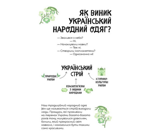 Неллі ШарабароваУкраїнський традиційний стрій — яка краса! Яка простота та різномаїття! Це натхнення для сучасних модниць. Це той елемент, який чи не найміцніше пов?язує минуле і сьогодення. Його витончена та гармонійна краса дарує наснагу і чисту насолоду. Бо візитівка українського строю — і в давні часи, і сьогодні — це елегантність, практичність і вишуканість. Нам є що плекати та наслідувати. І чим пишатися. Чому варто прочитати: Унікальне художнє подарункове видання, в якому — уперше в Україні, а можливо й у світі! — поєднані просторові та цифрові інтерактивні елементи. Роздивіться 30 унікальних строїв та традиційних прикрас з різних етнорегіонів України. Відкрийте 40 віконечок, а з ними 40 цікавезних і достовірних фактів з історії українського традиційного строю. Подивіться 30 блоків доданої реальності із застосунком Аrtivive, встановити який можна всього декількома рухами. Прочитайте приголомшливі комікс-історії про головні елементи українського вбрання. Унікальний, чарівний, правдивий — ви варті такого подарунка. Авторки: Неллі Шарабарова — магістр образотворчого мистецтва. У 2019 році брала участь у виставці «Арт Дебют» м. Енергодар). У 2021 році учасниця Всеукраїнської виставки «Графіка у Харкові». Художниця-ілюстраторка, працює в жанрі книжкової ілюстрації.Ганна Баранова — магістр образотворчого мистецтва. Колекціонерка і дослідниця українського національного строю. Засновниця етнографічної майстерні «Вільна птаха горобчик».